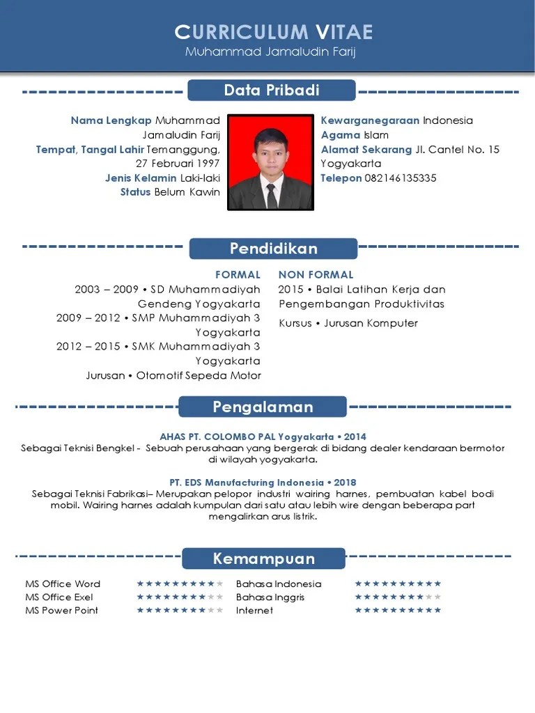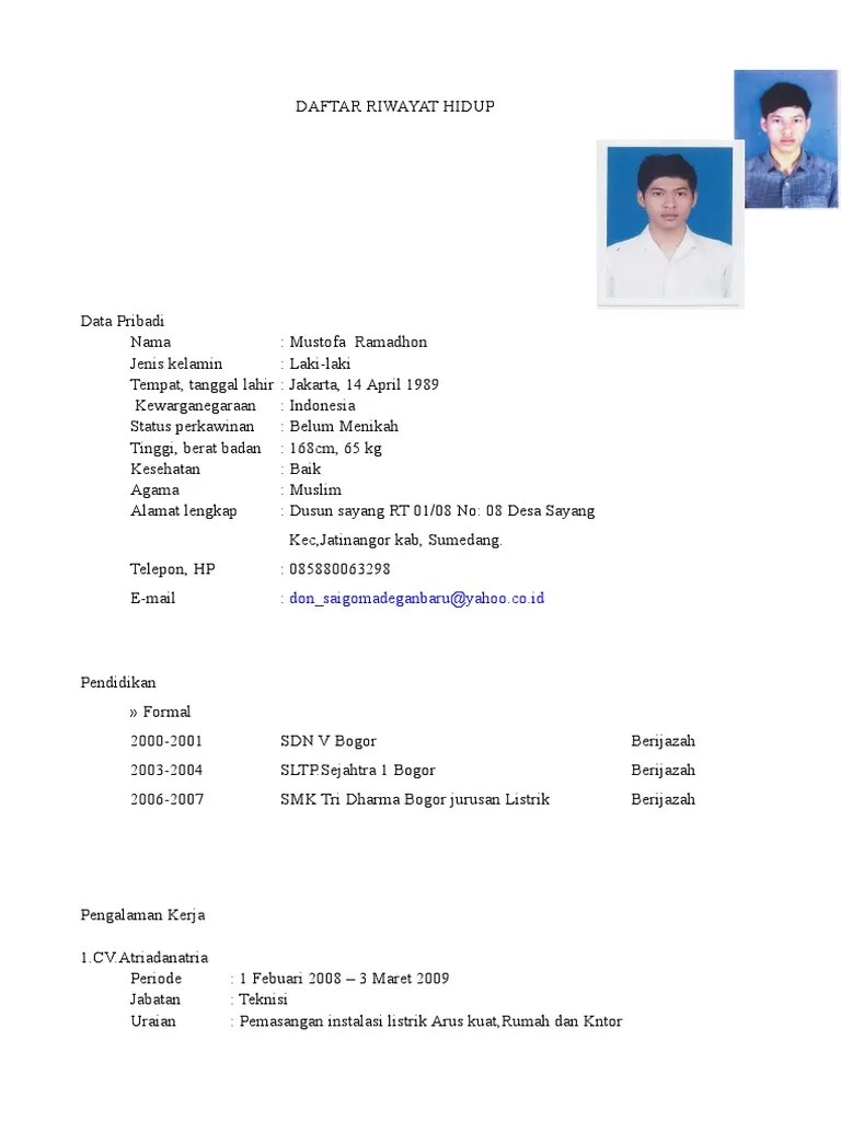 Kurangnya ruang kosong juga bisa membuat beberapa informasi penting dalam cv terlewat begitu saja oleh orang hrd. Ada perusahaan yang sedang membuka kesempatan lowongan kerja teknisi jaringan, staf teknisi, teknisi lapangan, teknisi service center dan banyak lagi melalui indeed.com. Bahasa (inggris, jepang) bem ui (2015) contoh cv teknisi; 10 contoh resensi buku non fiksi singkat pdf. Terutama bagi kamu yang baru lulus dan sedang memimpikan bekerja di pabrik atau perusahaan idaman. Curriculum vitae adalah salah satu dokumen yang akan dilihat pertama kali oleh sebuah perusahaan untuk menilai rekam jejak seorang pelamar kerja. Dalam realita para pencari kerja masih banyak yang belum memahami bagaimana cara membuat cv atau daftar riwayat hidup yang benar. Melakukan perbaikan ringan pada unit ac dan exhaust fan agar bisa bekerja secara optimal melakukan pengukuran pada ampere ac. contoh surat lamaran kerja dalam bahasa inggris posisi teknisi posisi sebagai seorang teknisi memiliki peranan yang sangat penting dalam sebuah perusahaan. Menulis deskripsi diri terkadang memang sulit. Untungnya, kami akan berikan beberapa contoh yang memudahkan penulisan biodata formal pada cv untuk melamar pekerjaan. Curriculum vitae adalah sebuah ekspresi latin yang diterjemahkan sebagai 'perjalanan dalam hidup'. 2005 sampai dengan 2009 :