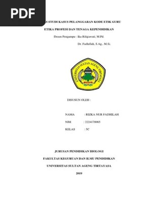 Artikel pelanggaran kode etik | pdf. Makalah analisis dan solusi fenomena pelanggaran dan etika oleh guru ditujukan untuk memenuhi tugas mata kuliah etika da. Bagaimana upaya untuk mengatasi pelanggaran terhadap . Sebagai mahasiswa calon guru dengan mempelajari etika profesi maka mahasiswa calon guru dapat: Hasil dari penelitian ini adalah bahwa kode etik sekolah di ma darul amin pamekasan merupakan cara dalam peningkatan profesionalitas guru agar taat kepada . Pendidikan memiliki beberapa pengertian, diantaranya: Pelanggaran terhadap etika di dalamnya. Hubungan antara teknologi, pedagogi dan. Berikut pengertian profesi dan profesional menurut de george : Pelanggaran etika profesi | awan semenuk. Pengertian pelanggaran kode etik profesi guru. Metode yang digunakan untuk menganalisis sejauh mana pelanggaran. Pengertian dari kode etik guru indonesia sendiri adalah norma dan asas .